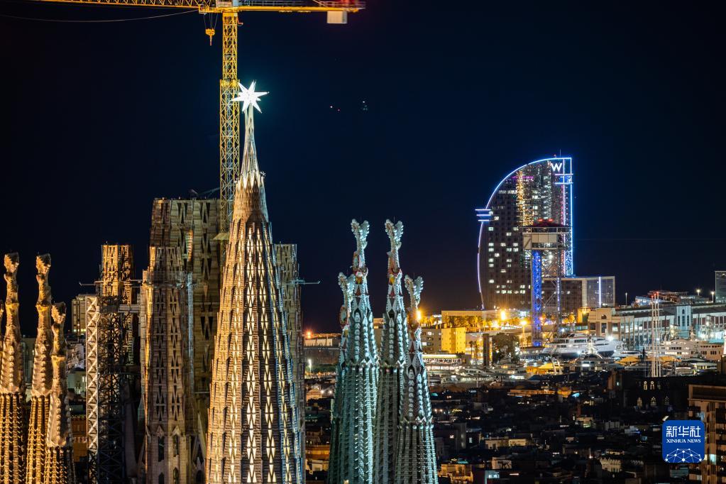西班牙巴塞羅那地標建筑圣家族大教堂(又稱圣家堂)上的塔頂之星于11月29日安裝,12月8日點亮,標志著教堂建設“封頂”。圣家堂由西班牙著名建筑師高迪設計,從1882年開始修建至今,預計將于2030年竣工。