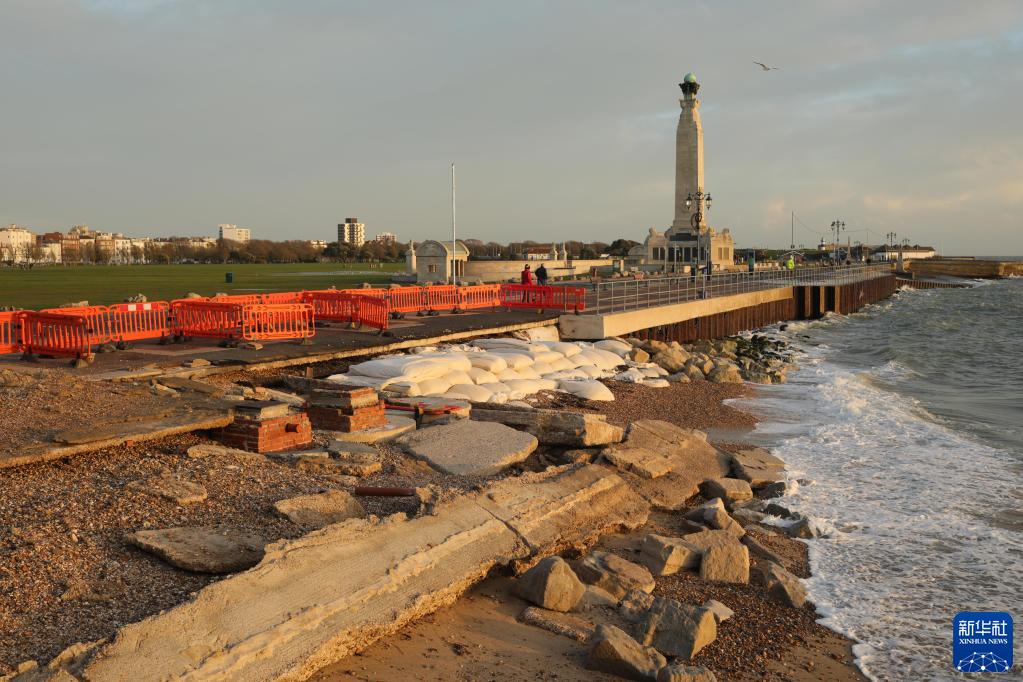 12月8日,在英國樸次茅斯,海岸邊一些設施受損。