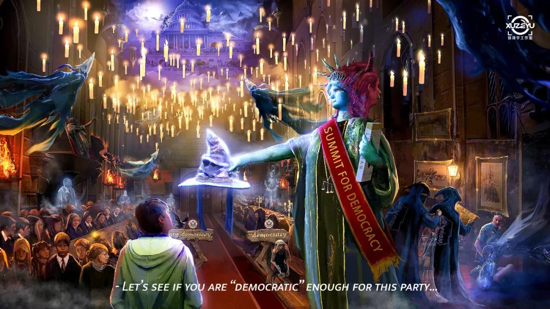 還有外國網友看完漫畫有感而發,為美當局量身打造了一個與Democracy(民主)相近的詞——“DemonCrazy”(惡魔民主),并將此次“民主峰會”比作“‘惡魔民主’的分類大會。”