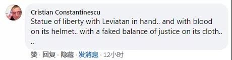 “自由女神手里卻拿著《利維坦》,頭頂沾滿鮮血,胸前戴著一個失衡的天平。”