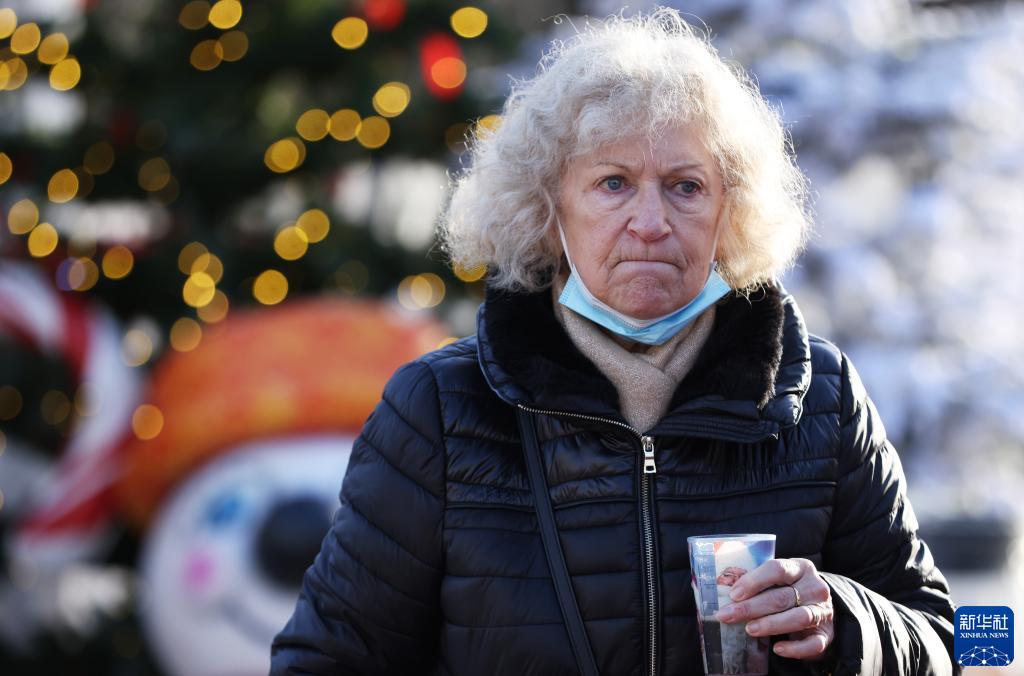 12月9日,一名女子在法國巴黎一家圣誕市場邊走邊喝熱紅酒。