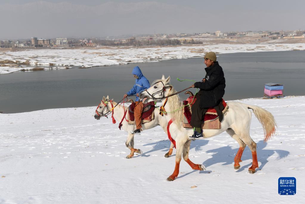 12月16日,人們在雪后的阿富汗喀布爾騎馬。新華社發(塞夫拉赫曼·薩菲攝)