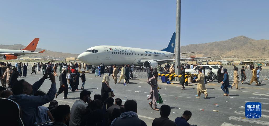 2021年8月16日,大量民眾聚集在阿富汗首都喀布爾國際機場的停機坪。2021年8月15日,阿富汗塔利班進入并控制首都喀布爾。