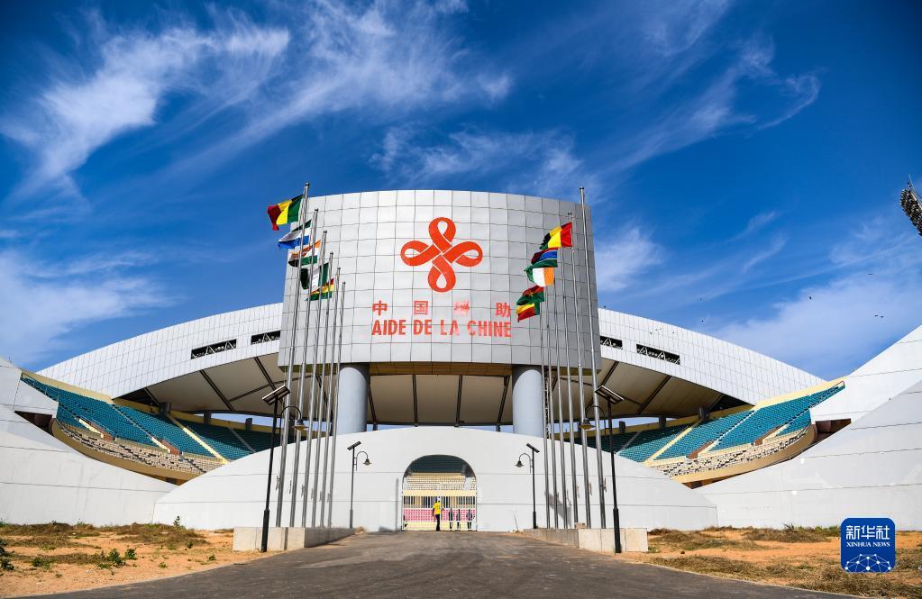 這是2021年11月21日在塞內加爾首都達喀爾拍攝的塞內加爾競技摔跤場。塞內加爾競技摔跤場是中國在塞內加爾規模最大的援助項目,可同時容納2萬名觀眾,是非洲首座現代化摔跤場。
