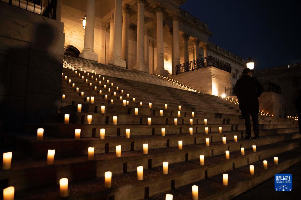 1月6日,美國首都華盛頓國會(huì)大廈外擺放蠟燭紀(jì)念國會(huì)山騷亂事件一周年。