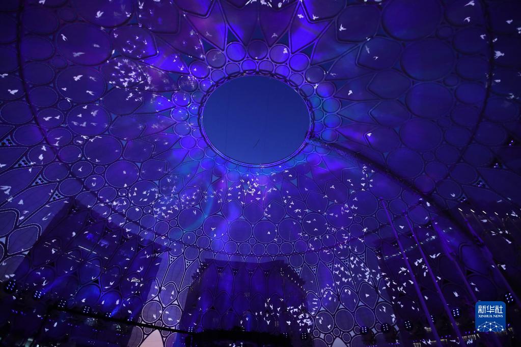 這是1月9日在阿拉伯聯(lián)合酋長國迪拜世博園穹頂廣場(chǎng)拍攝的穹頂。