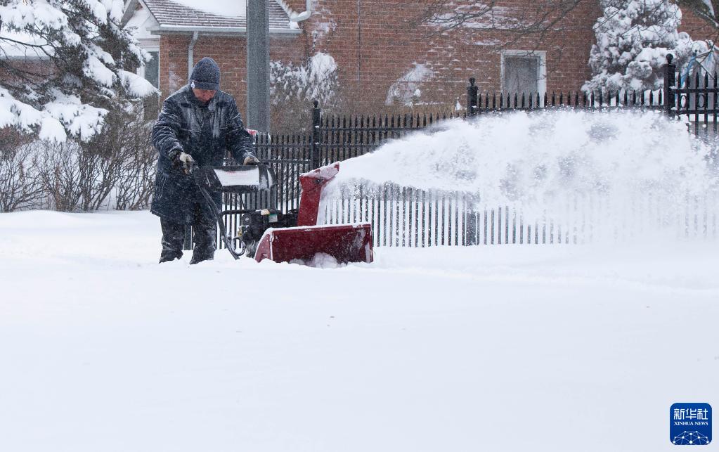 1月17日,在加拿大大多倫多地區米西索加,一名男子用除雪機清雪。