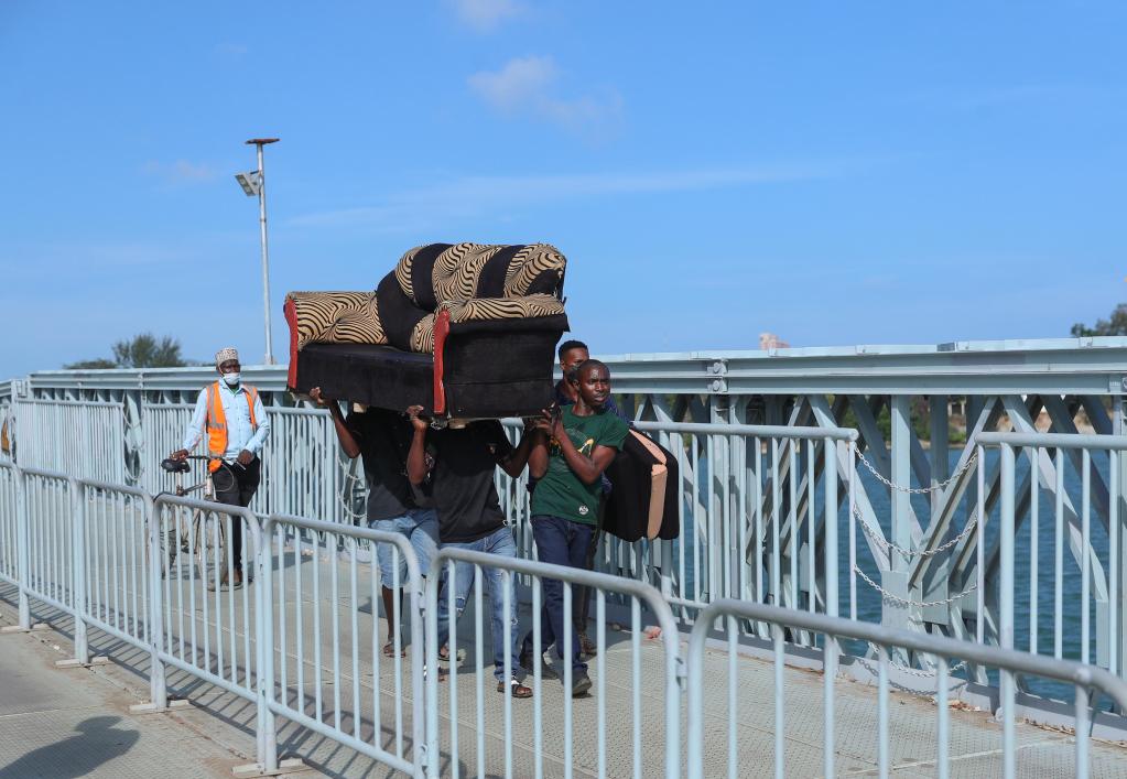 日前,記者一行來到利科尼浮橋。15時許,當日進出港的船只均通行完畢,浮橋開始合攏。16時許,從蒙巴薩島返回利科尼的行人逐漸多了起來。