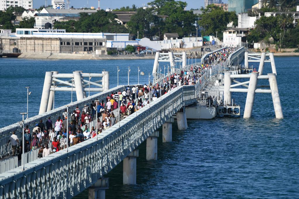 因此,肯尼亞政府決定建造一座跨海浮橋。2020年9月,利科尼浮橋項目正式啟動,并于當年12月10日完工。如今,全長近2千米的浮橋日均通行人流量達30萬人次。浮橋還設有186米可開啟段,以保證進出港口的船舶通行。目前,輪渡主要用于運輸跨海車輛。
