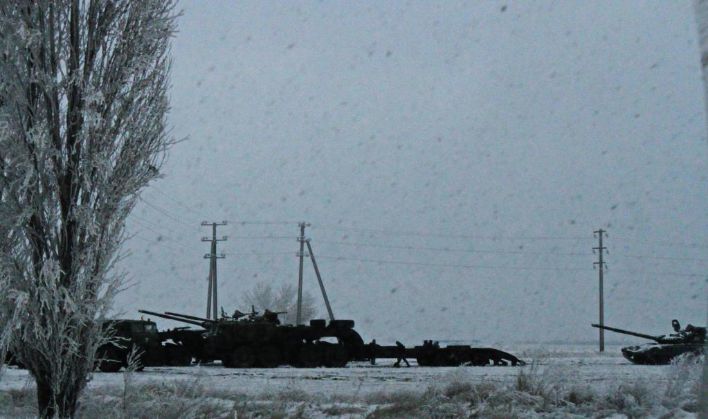 這是2016年12月24日在通往烏克蘭頓涅茨克市的路上拍攝的從前線撤回的烏政府軍重型火炮和坦克。新華社記者陳俊鋒攝