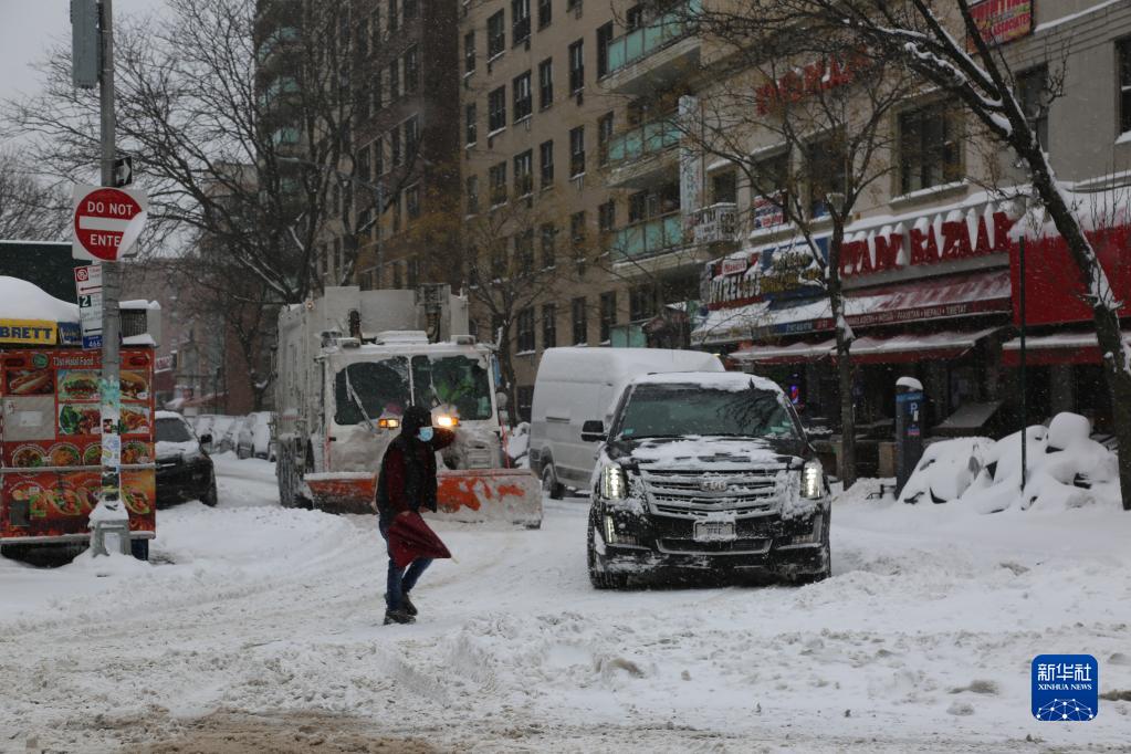 1月29日,在美國紐約,行人穿過積雪的街道。