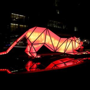 2月17日,在英國倫敦,慶祝中國虎年的燈光藝術裝置在巴特西發電站燈光節上展出。