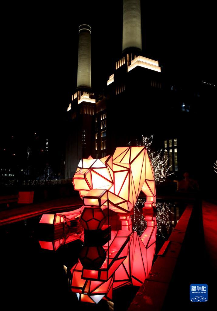 2月17日,在英國倫敦,慶祝中國虎年的燈光藝術裝置在巴特西發(fā)電站燈光節(jié)上展出。