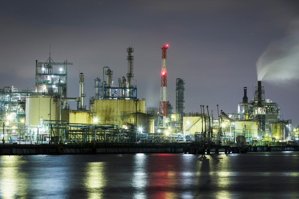 這是2020年6月29日在日本神奈川縣川崎市拍攝的工廠夜景。(新華社記者杜瀟逸攝)