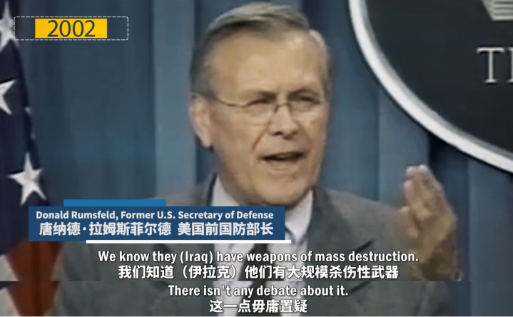 比如,為了發(fā)動(dòng)伊拉克戰(zhàn)爭,美國號(hào)稱薩達(dá)姆政權(quán)擁有大規(guī)模殺傷性武器: