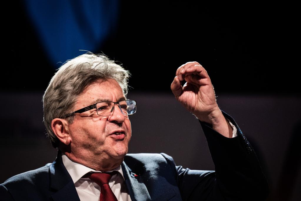 6月19日,法國極左翼政黨“不屈法國”領(lǐng)導(dǎo)人梅朗雄在巴黎舉行的選后集會上講話。(新華社發(fā),何塞·博薩斯攝)