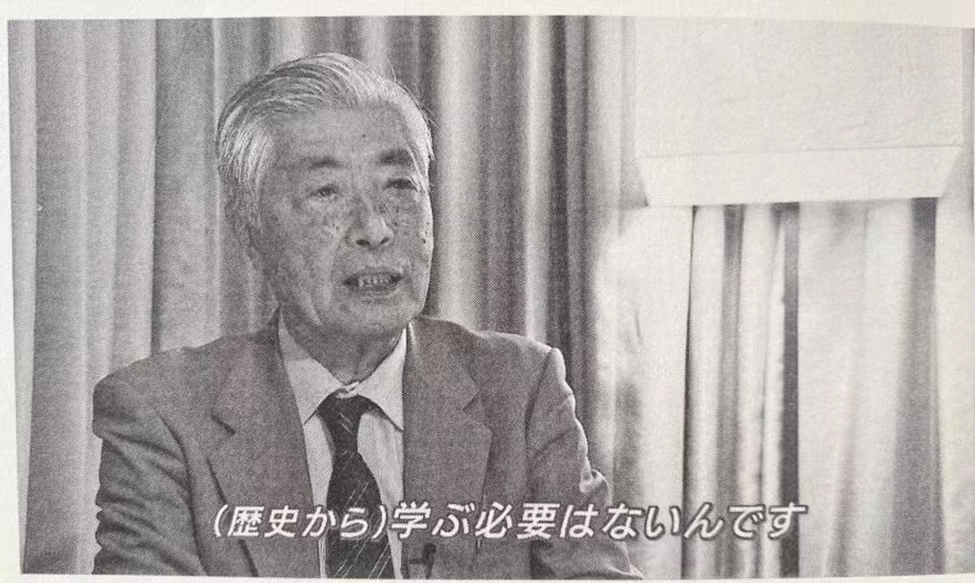 紀(jì)錄片《教育與愛(ài)國(guó)》的相關(guān)書籍中展示伊藤隆稱“歷史沒(méi)必要學(xué)”的畫面。