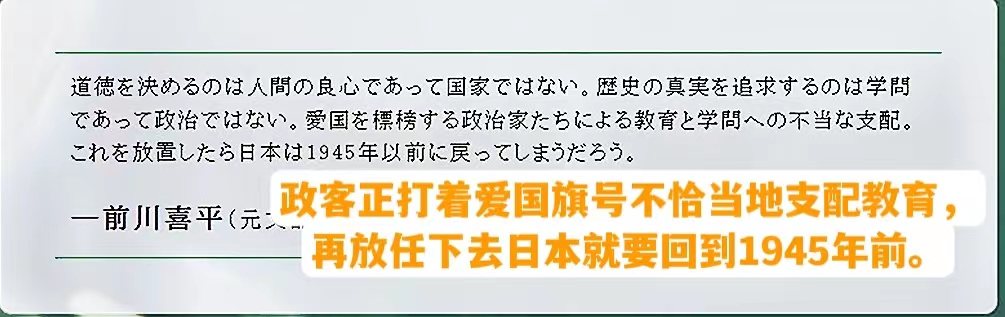 第三,日本政界打著“愛(ài)國(guó)”旗號(hào)施壓教育界。