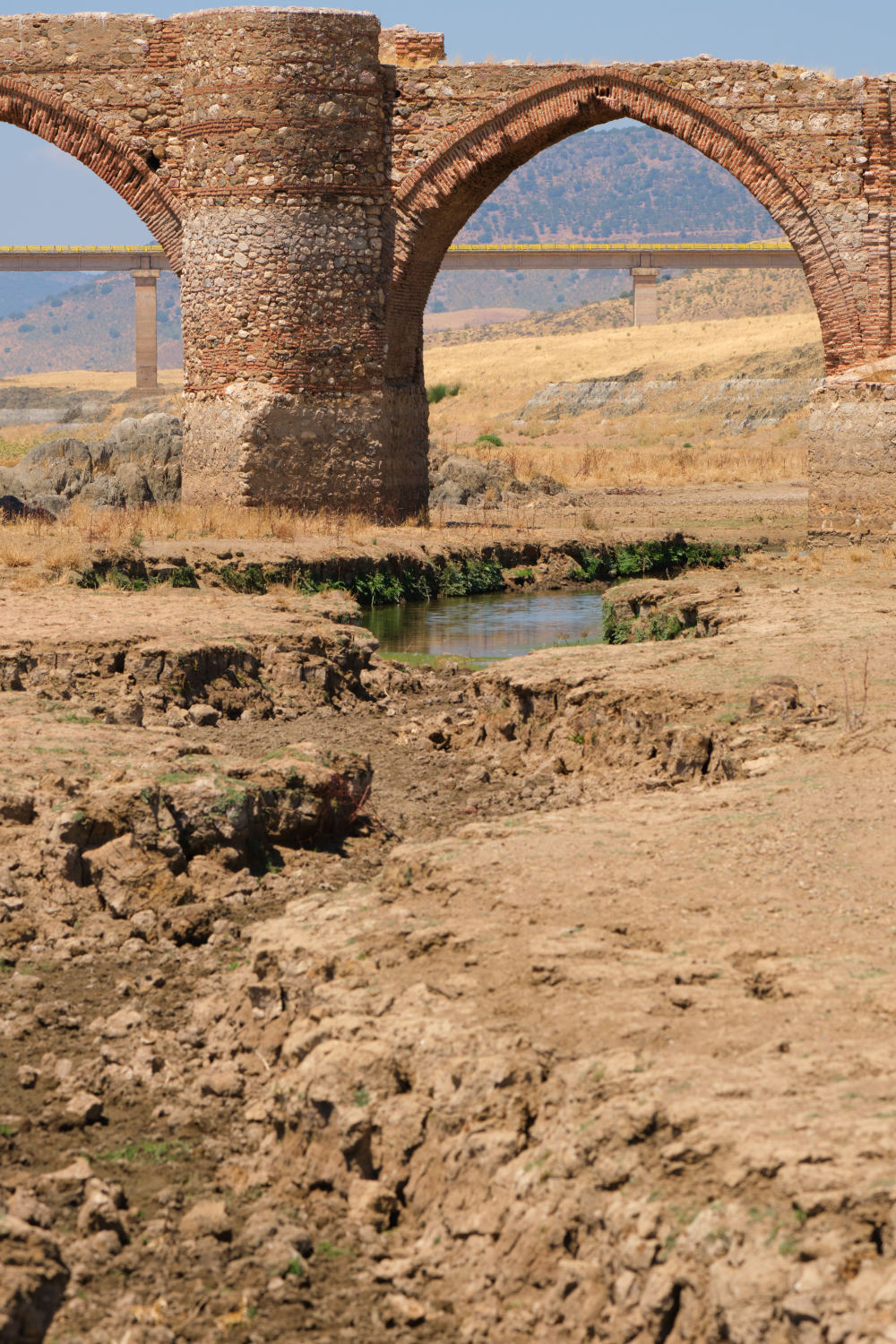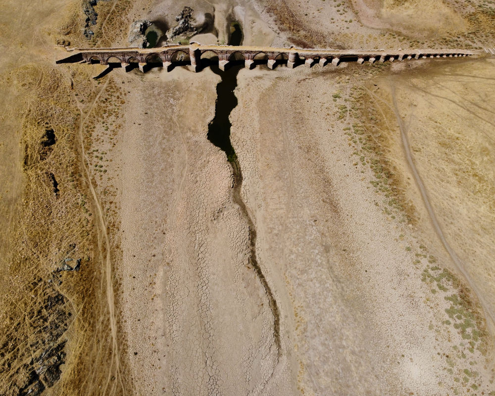 ↑這是8月15日拍攝的干涸的西班牙錫哈拉水庫(kù)中的梅斯塔古橋,這座橋上世紀(jì)50年代因水庫(kù)落成而被淹沒(méi)。新華社發(fā)(古斯塔沃·巴連特?cái)z)