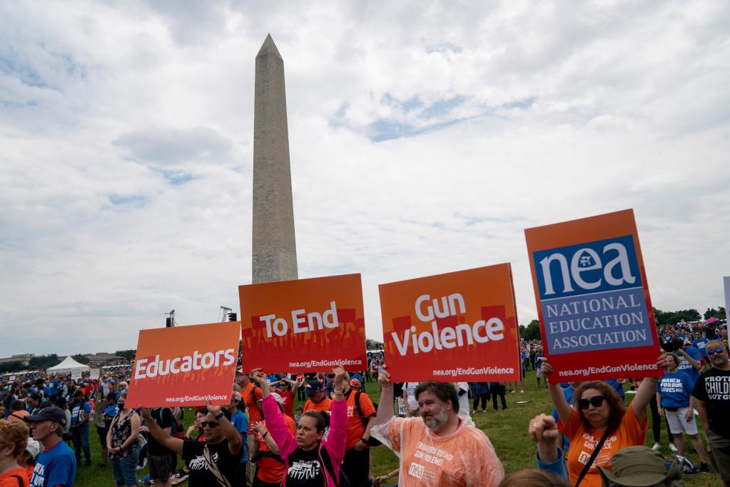 6月11日,人們在美國首都華盛頓舉行集會示威活動,要求政府和政客應對槍支暴力問題,加強保護兒童生命安全。(新華社記者劉杰攝)