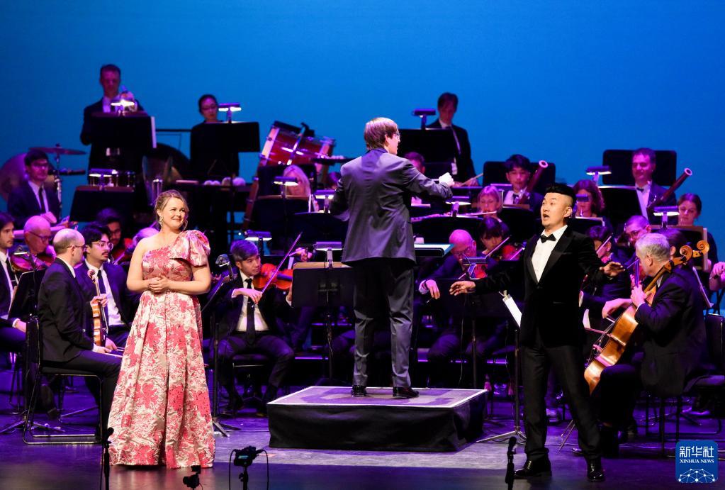 9月19日,中新兩國男女高音歌唱家在新西蘭惠靈頓舉行的“中華風韻”交響音樂會上共同演唱中國名曲《長江之歌》。