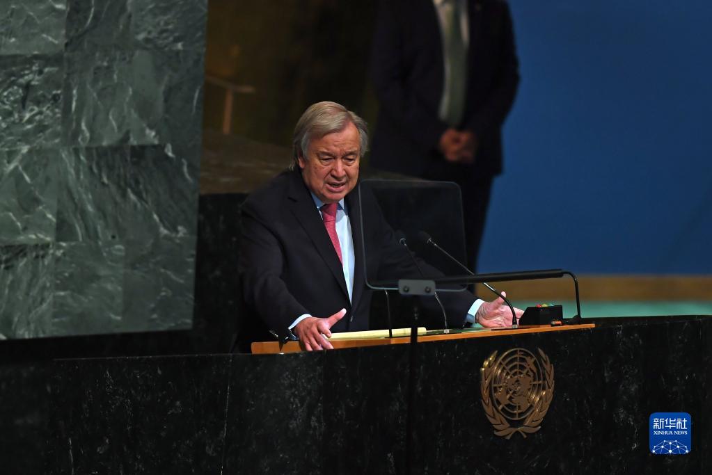 9月20日,在位于紐約的聯合國總部,聯合國秘書長古特雷斯在第77屆聯合國大會一般性辯論開幕式上致辭。