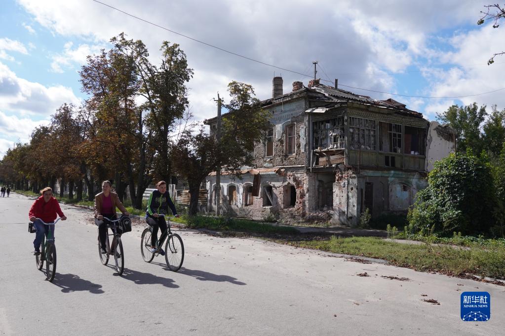 9月19日,人們在烏克蘭哈爾科夫州伊久姆市騎車出行。