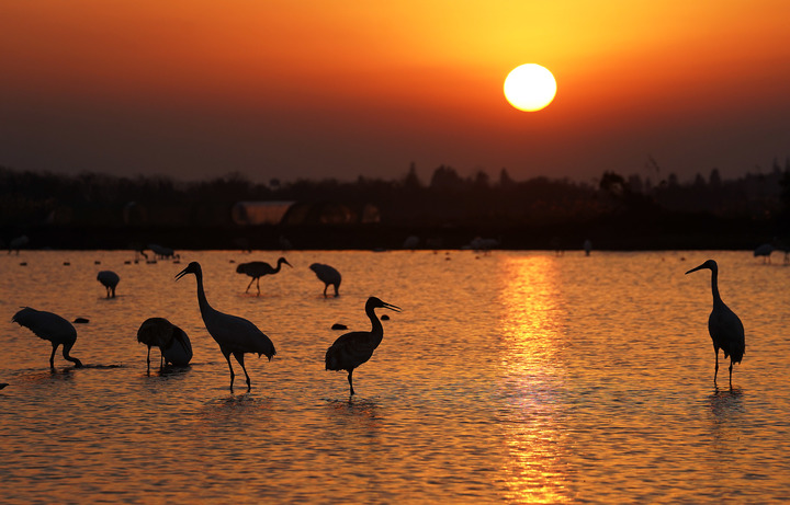白鶴在南昌五星白鶴保護小區的濕地中棲息覓食。新華社記者萬象攝