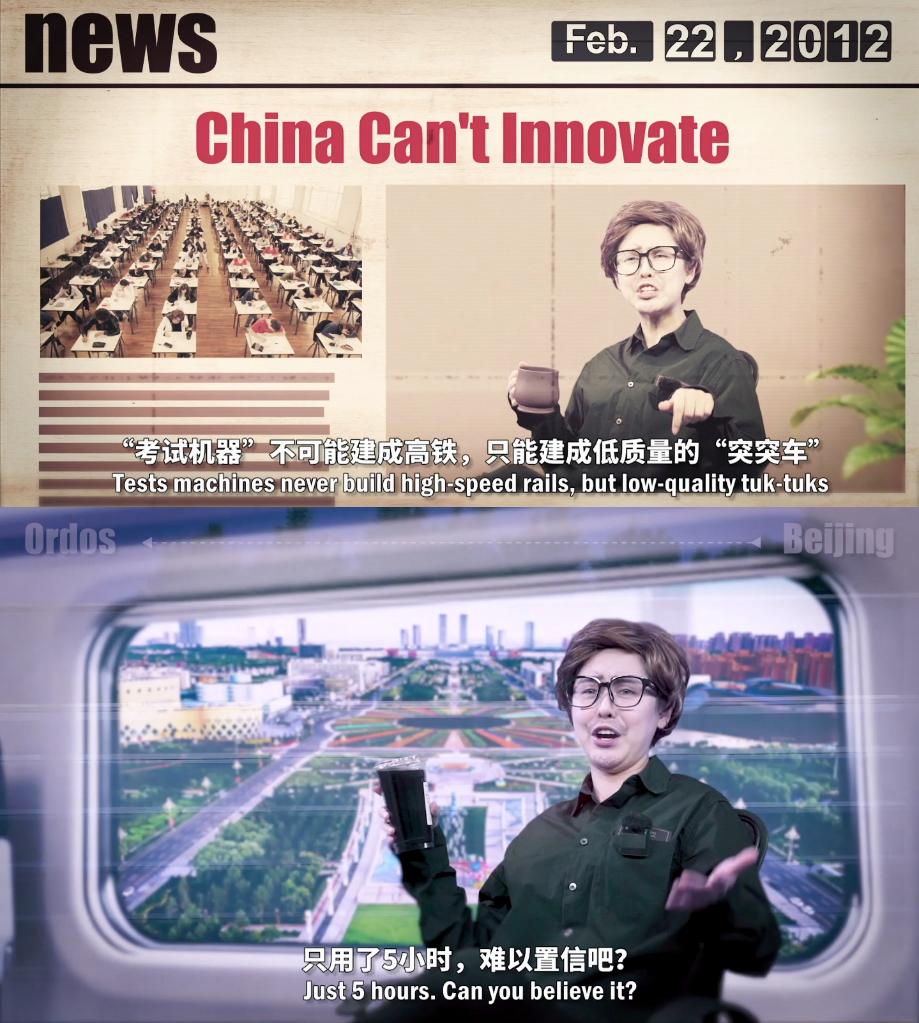 劇中,某外媒駐華首席記者鮑勃搭乘高鐵去了內(nèi)蒙古自治區(qū)鄂爾多斯市,感嘆中國高鐵速度之快、票價之惠、沿途風景之美。而十年前的他還聲稱,中國高鐵是“低質(zhì)量的突突車”和“破銅爛鐵”……