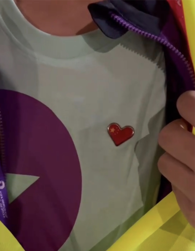 都別著一枚本屆世界杯志愿者專屬徽章