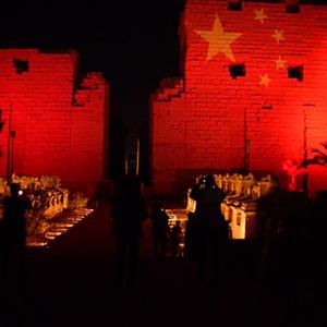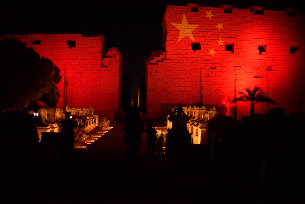 2020年3月1日晚,位于埃及開羅、盧克索、阿斯旺的三大世界文化遺產(chǎn)地以燈光秀的形式同時點亮五星紅旗,以此表達(dá)埃及政府和人民對中國抗擊新冠肺炎疫情的支持。圖為當(dāng)天在埃及盧克索拍攝的卡爾納克神廟。新華社發(fā)(拉德萬攝)
