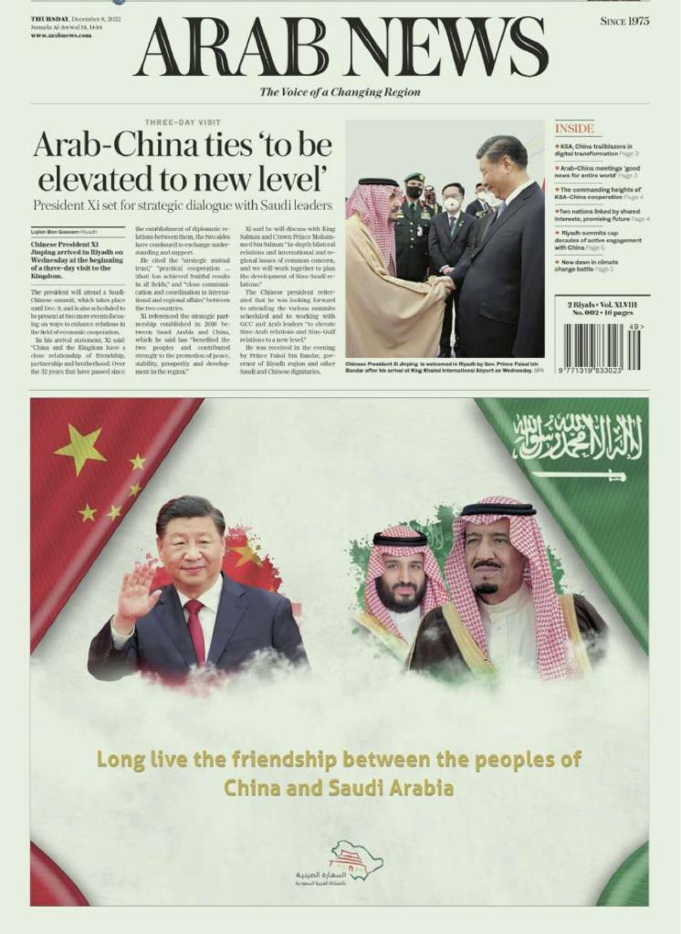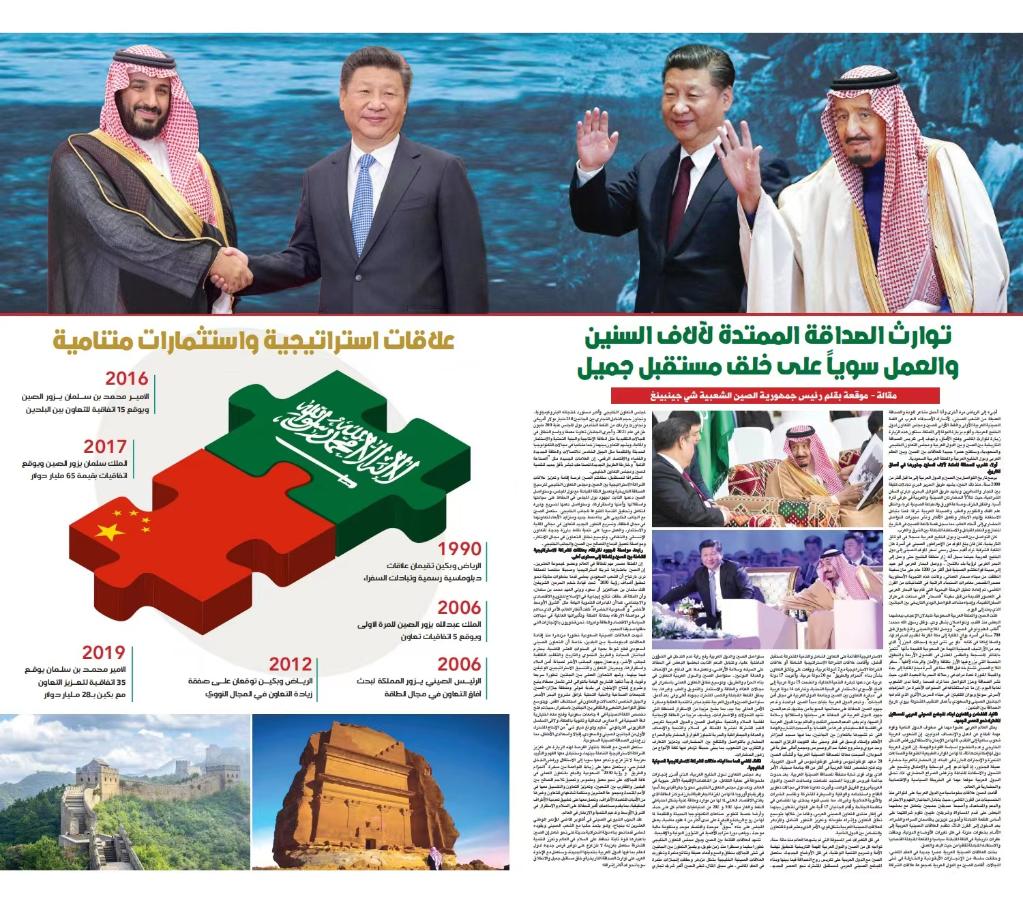 《利雅得報》和《阿拉伯新聞報》均推出多個版面,對沙中兩國關系以及沙中合作成就進行報道和梳理。