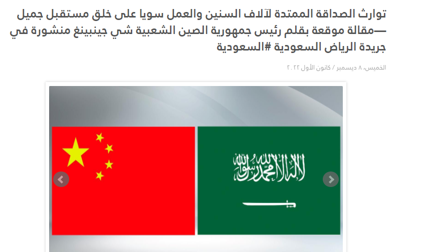“帶著中國人民的深情厚誼,我再次來到利雅得,”習近平主席在署名文章開篇寫道。