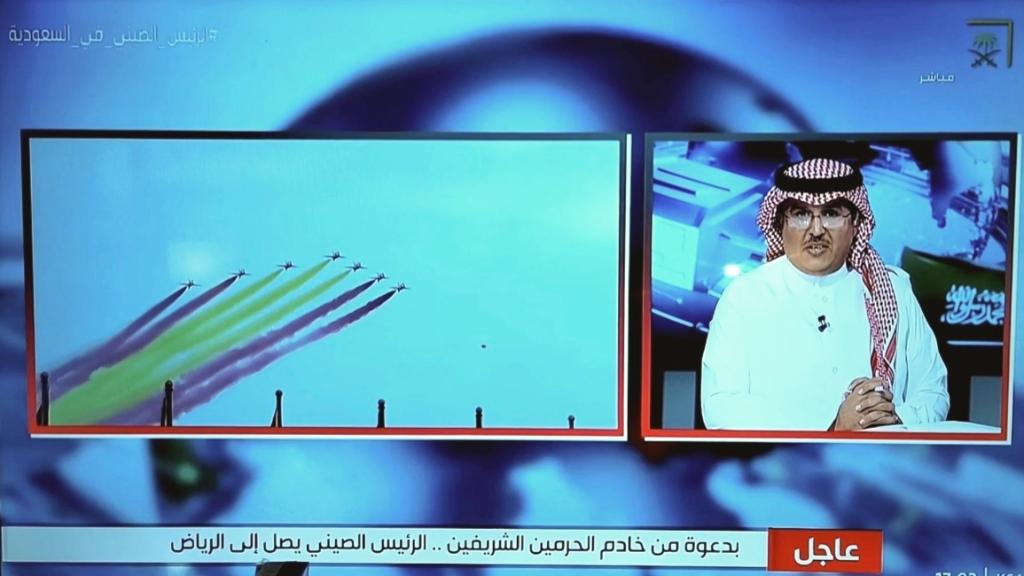 沙特電視臺直播習近平主席抵達利雅得和沙特隆重迎接的場面,并滾動報道關于習主席此次訪問和即將舉辦的中阿峰會、中海峰會的情況。