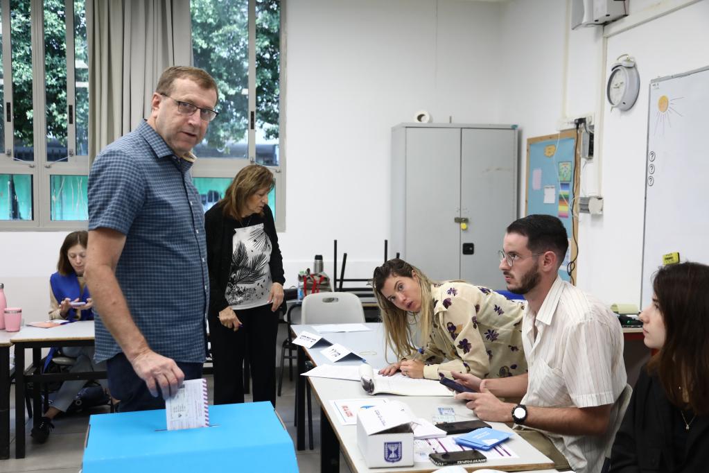 11月1日,人們在特拉維夫一處投票站參與議會選舉投票。新華社發(fā)(吉德翁攝/基尼圖片社)