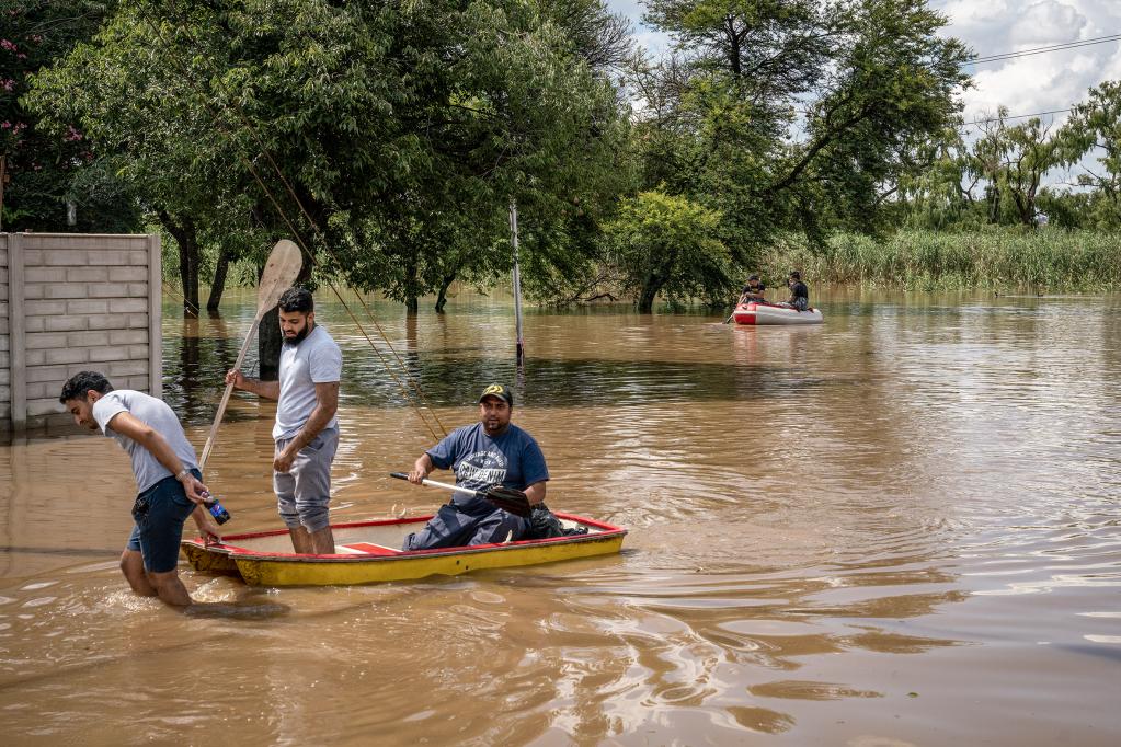 2022年12月9日,在南非約翰內斯堡,受災居民乘船轉移。新華社發(希拉茲·穆罕默德攝)