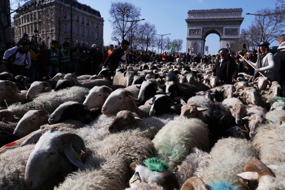 ↑2022年3月6日,2022只綿羊聚集在法國巴黎香榭麗舍大街上。這場別開生面的活動是第58屆法國國際農業博覽會的閉幕活動。