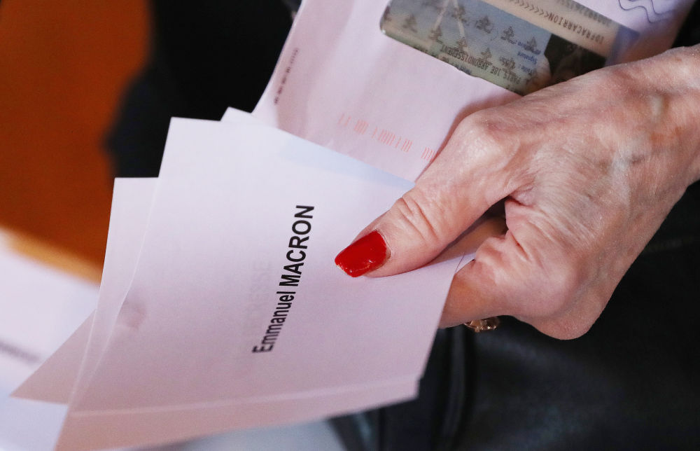 ↑2022年4月10日,選民來到法國巴黎附近的克里希市一家投票站投票。法國總統選舉首輪投票4月10日在法國本土開始進行。