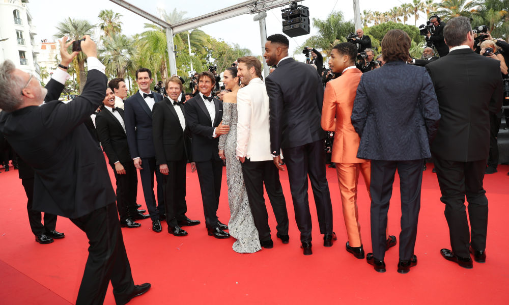 ↑2022年5月18日,影片《壯志凌云:獨行俠》主創人員抵達全球首映式現場。