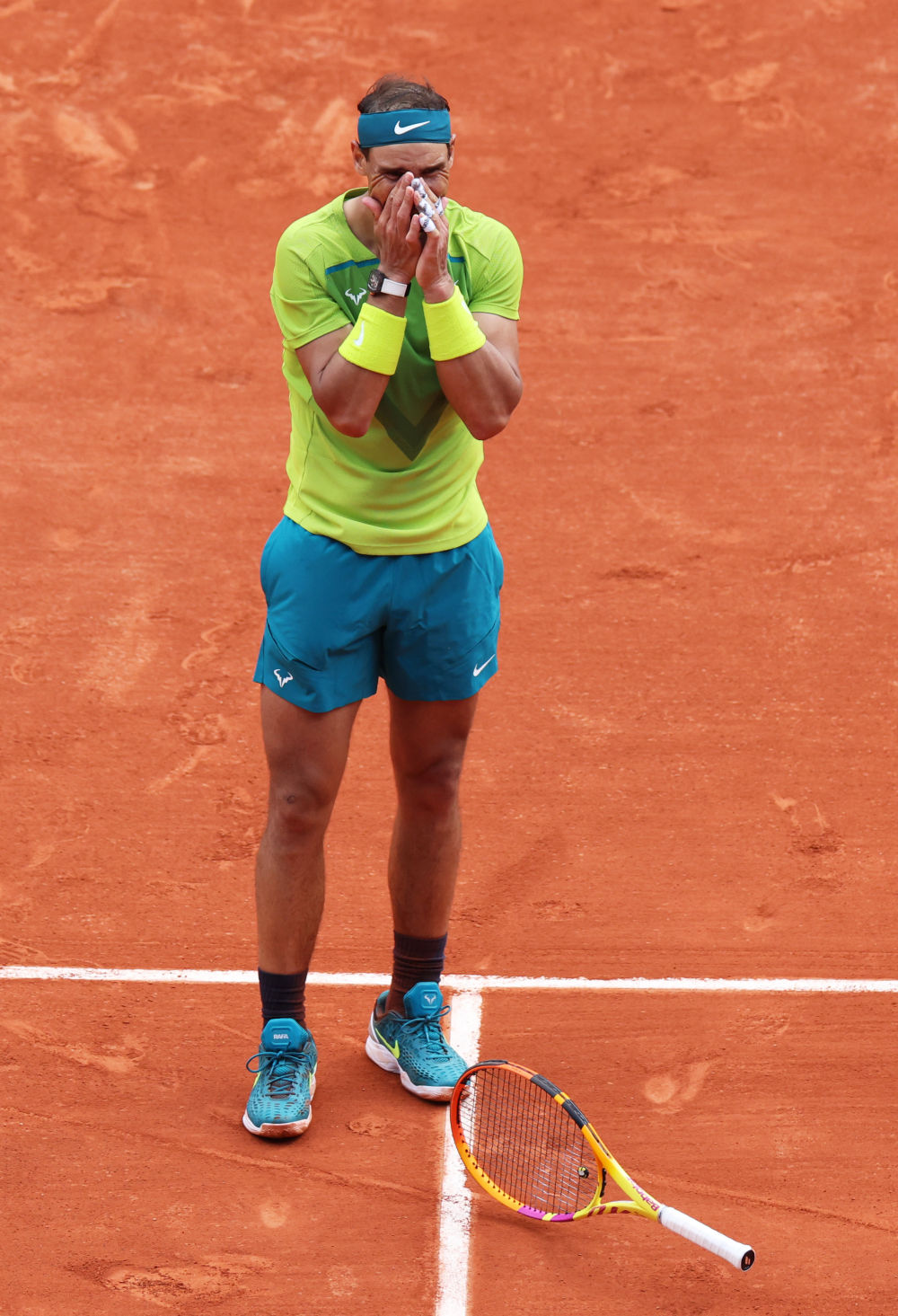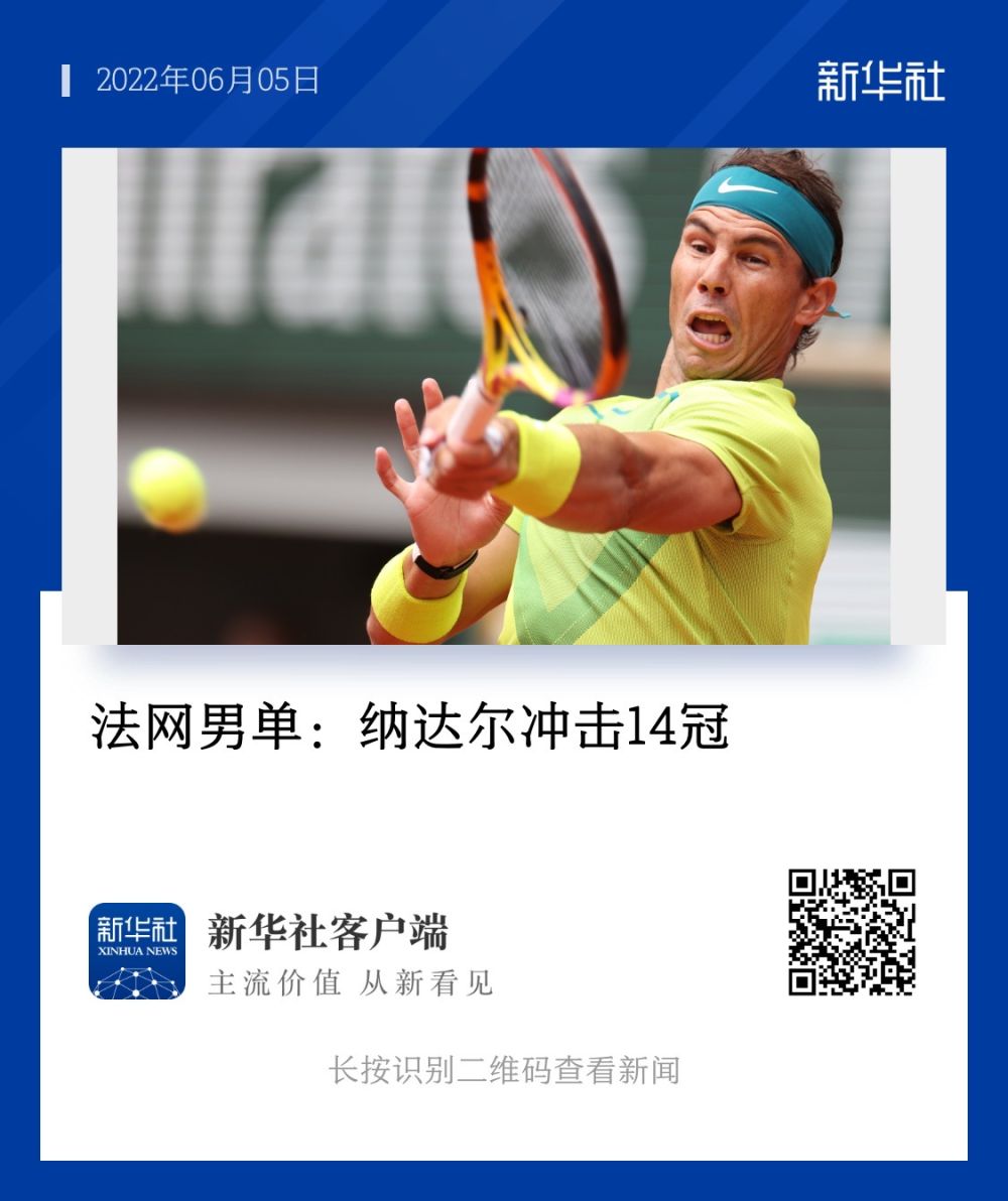 ↑2022年6月4日,西班牙選手納達爾在巴黎進行的2022法國網球公開賽男子單打決賽中戰勝挪威選手魯德,獲得冠軍。