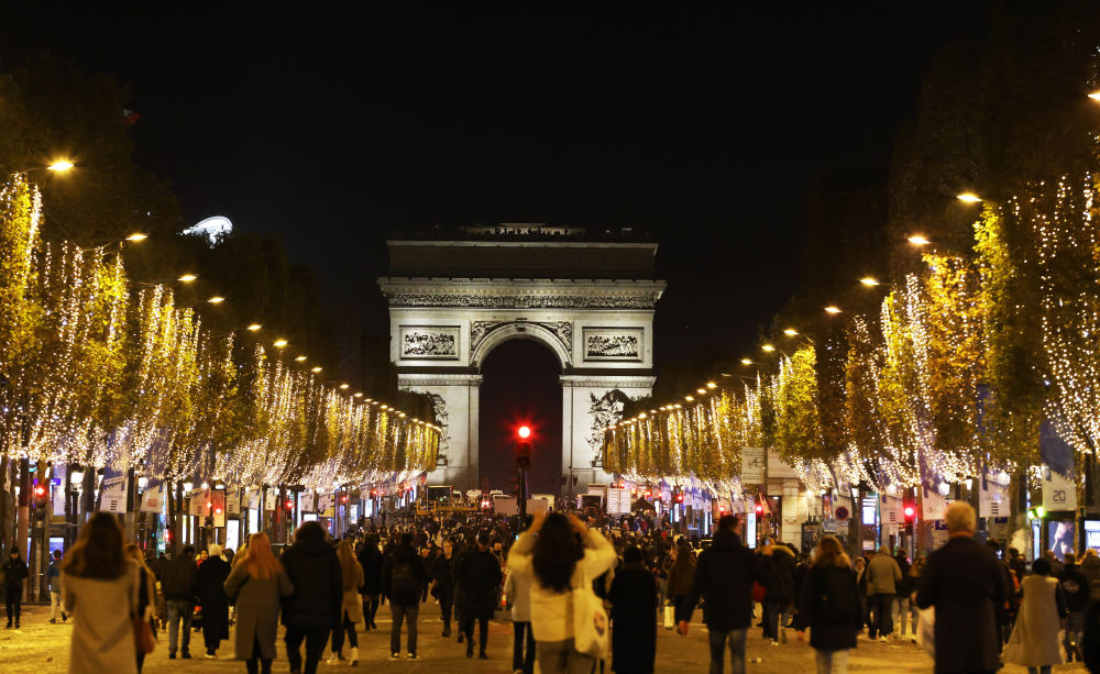 ↑這是2022年11月20日在法國巴黎拍攝的點燈后的香榭麗舍大街。