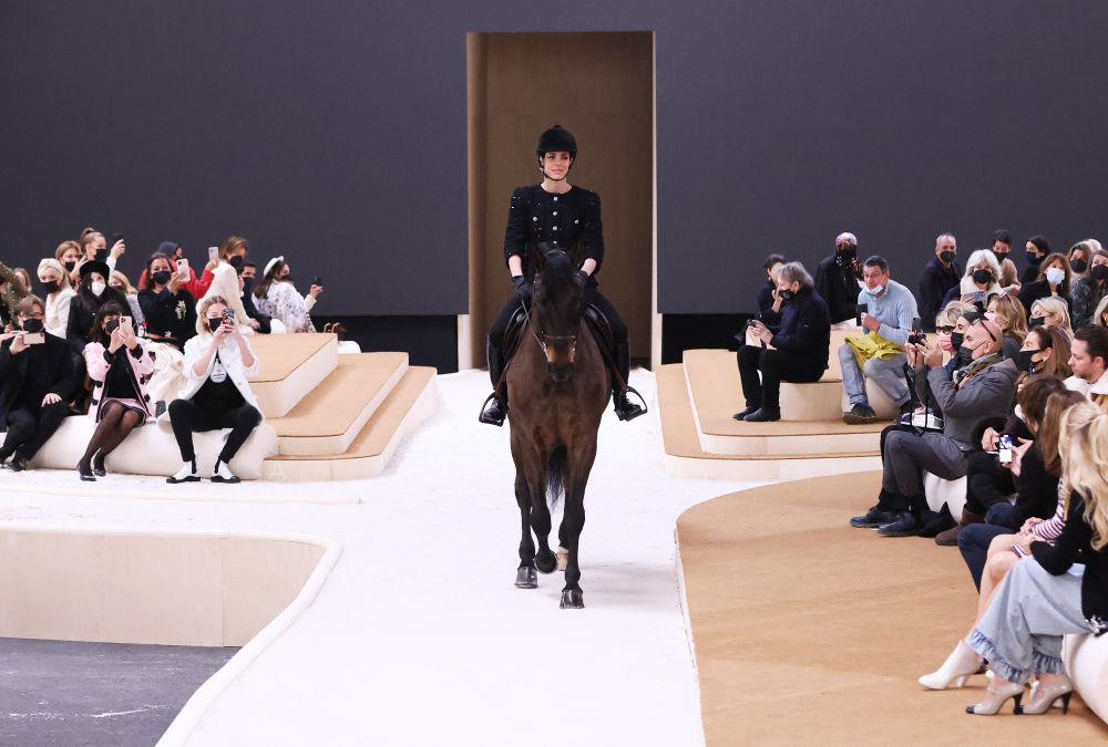 ↑2022年1月25日,在法國巴黎高級定制時裝周上,摩納哥的夏洛特公主為法國品牌香奈兒2022春夏新品發布會開場。
