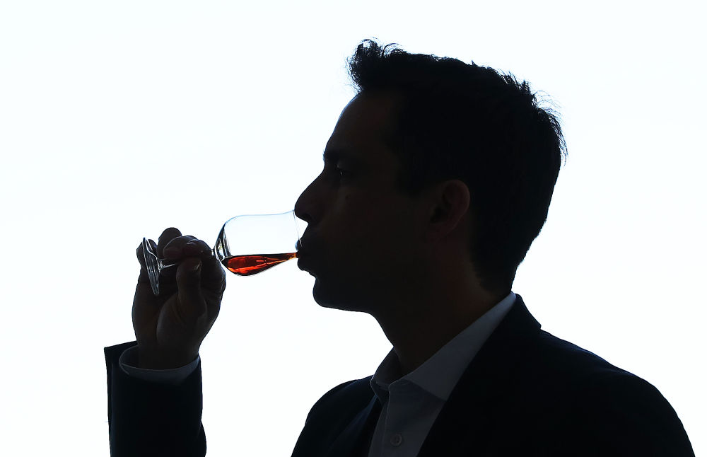 ↑2022年3月22日,在法國干邑,一名男子品嘗軒尼詩干邑白蘭地。