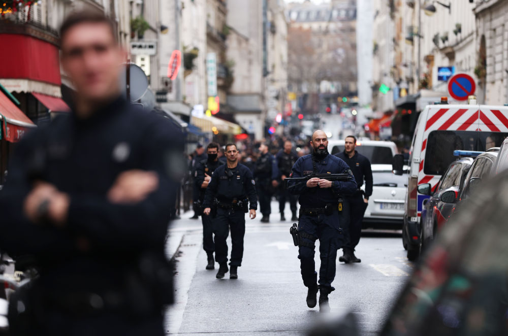 ↑2022年12月23日,警察在法國巴黎10區發生槍擊事件的街口警戒。槍擊事件導致3人死亡、多人受傷。
