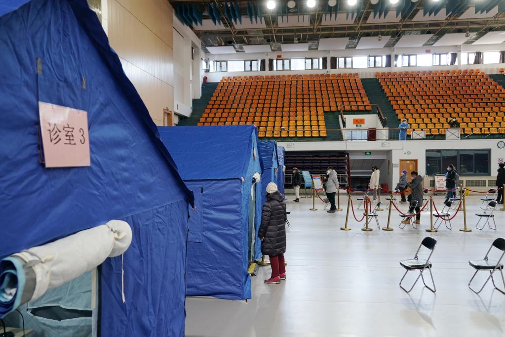 這是2022年12月24日拍攝的北京市西城區廣安體育館簡易發熱門診。新華社記者張晨霖攝