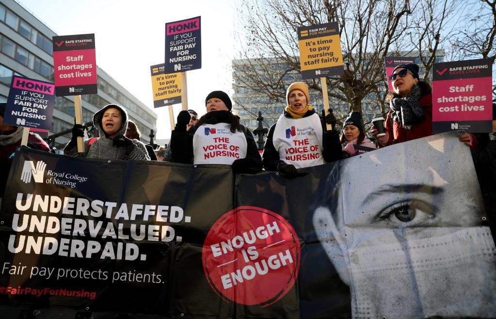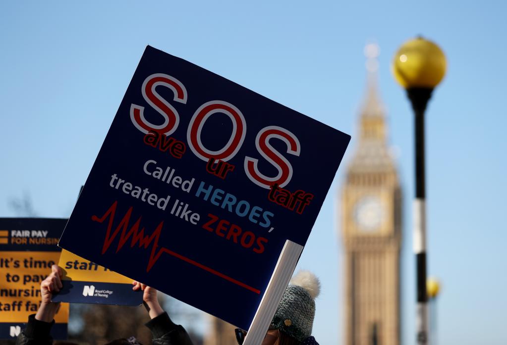 本輪罷工相對集中于公共部門,因為公共部門員工實際工資縮水更加明顯。“已有越來越多的護(hù)士因為在目前經(jīng)濟環(huán)境下無法負(fù)擔(dān)生活成本而選擇離職,英國護(hù)士崗位空缺正在大幅增加。”參與罷工的護(hù)士瑪麗·喬告訴新華社記者。
