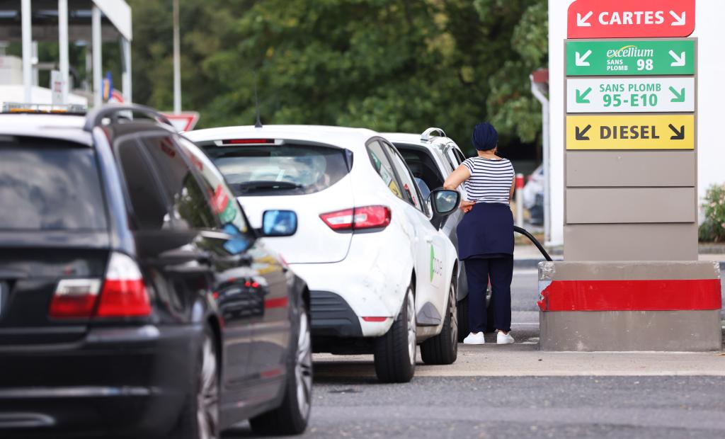 2022年8月18日, 人們在法國巴黎郊區的一處加油站加油。(新華社記者 高靜 攝)