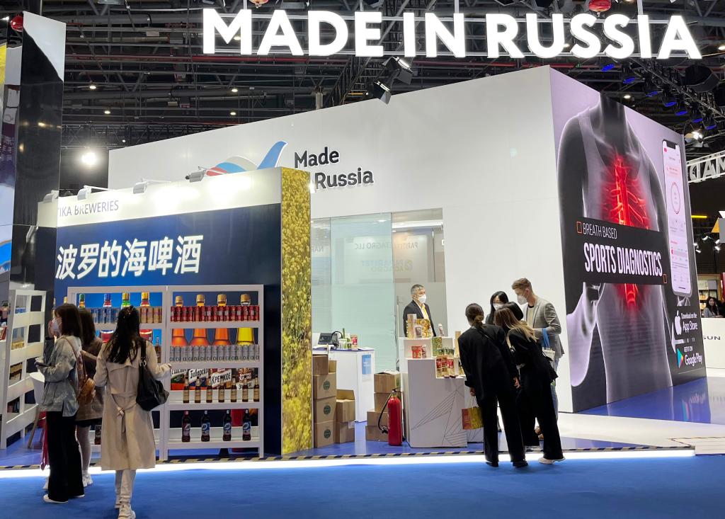 2022年11月6日在第五屆進博會上拍攝的俄羅斯產品展區。新華社記者鄭冬睿攝