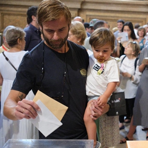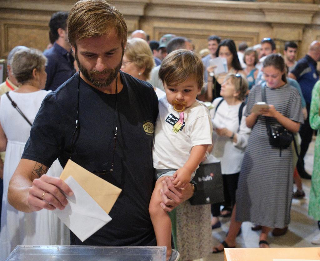 7月23日,一名男子在馬德里一處投票點內投票。新華社記者 孟鼎博 攝