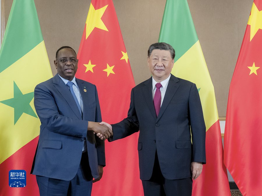 當(dāng)?shù)貢r(shí)間8月23日下午,國家主席習(xí)近平在約翰內(nèi)斯堡出席金磚國家領(lǐng)導(dǎo)人會晤期間會見塞內(nèi)加爾總統(tǒng)薩勒。新華社記者 翟健嵐 攝